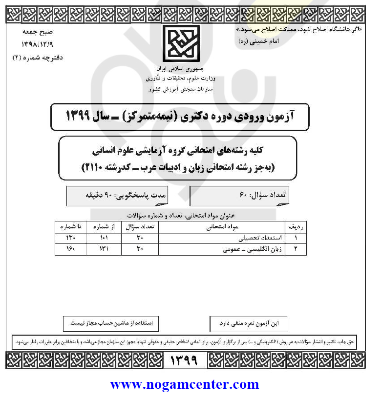 بیشتر بخوانید: سوالات استعداد تحصیلی دکتری علوم انسانی 1399 + پاسخنامه تشریحی